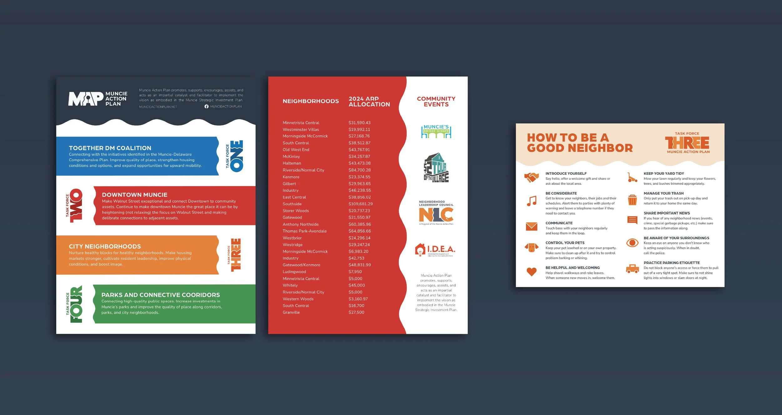 Muncie Action Plan needed a cohesive brand identity that would unify their main organization with multiple taskforces, each focused on different community initiatives, while maintaining a clear visual identity and professional credibility.
